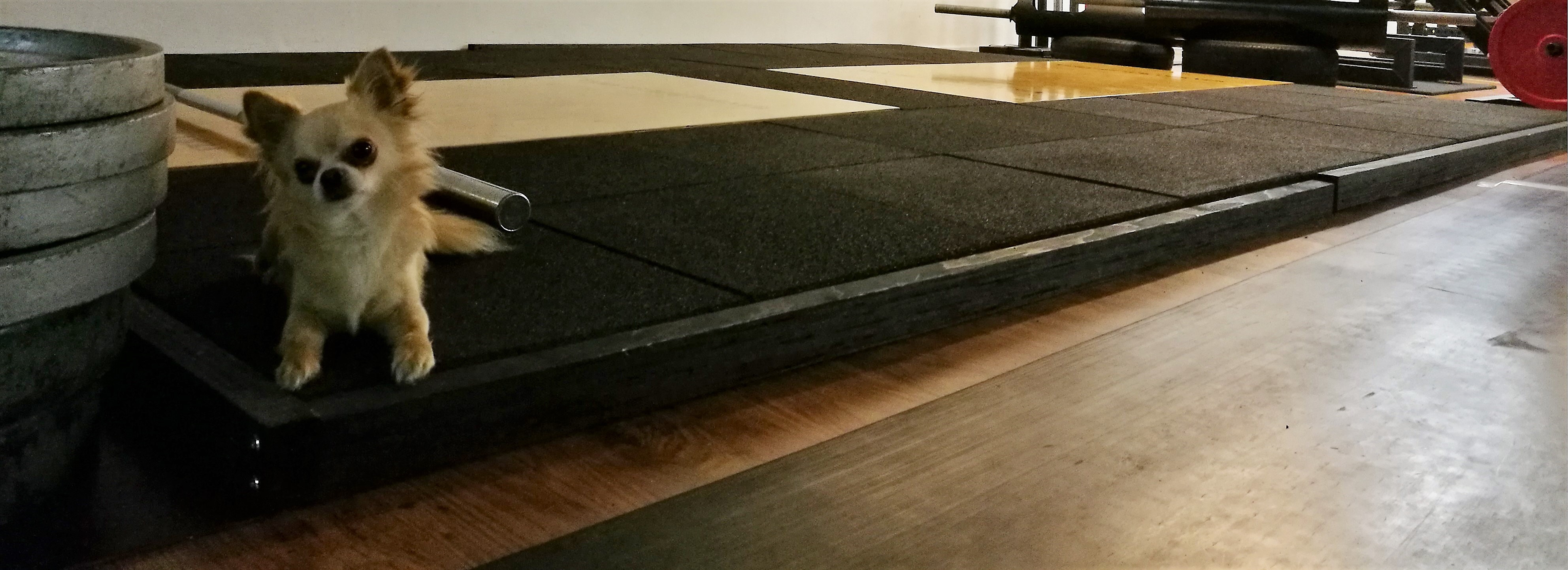 Sitten siirrytään taas salin vasempaan laitaan, josta löytyy kaksi kappaletta nostolavoja sekä yhdet kyykkytelineet. Isommalla nostolavalla on mittaa 4,5m x 3m ja pienemmällä lavalla 3m x 2m. Salin oikealta puolelta vastaavassa kohdassa löytyy kaksi kappaletta penkkipunnerruspenkkejä sekä dippiteline.